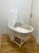 Der Stubenwagen hat wenige minimale Gebrauchsspuren, im Großen und Ganzen ist er aber noch sehr schön, vor allem mit der wunderschönen Wiegengarnitur.