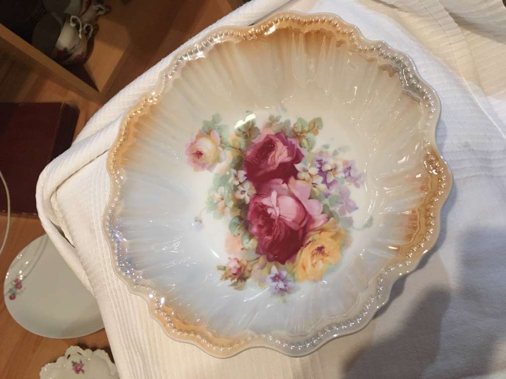 Bezaubernde antike Schüsselchen - glaciertes Porzellan mit wunderschönem Rosenmotiv.