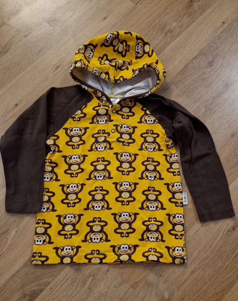 Babauba Longsleeve mit Kapuze, gelb/ braun, Affen, 98