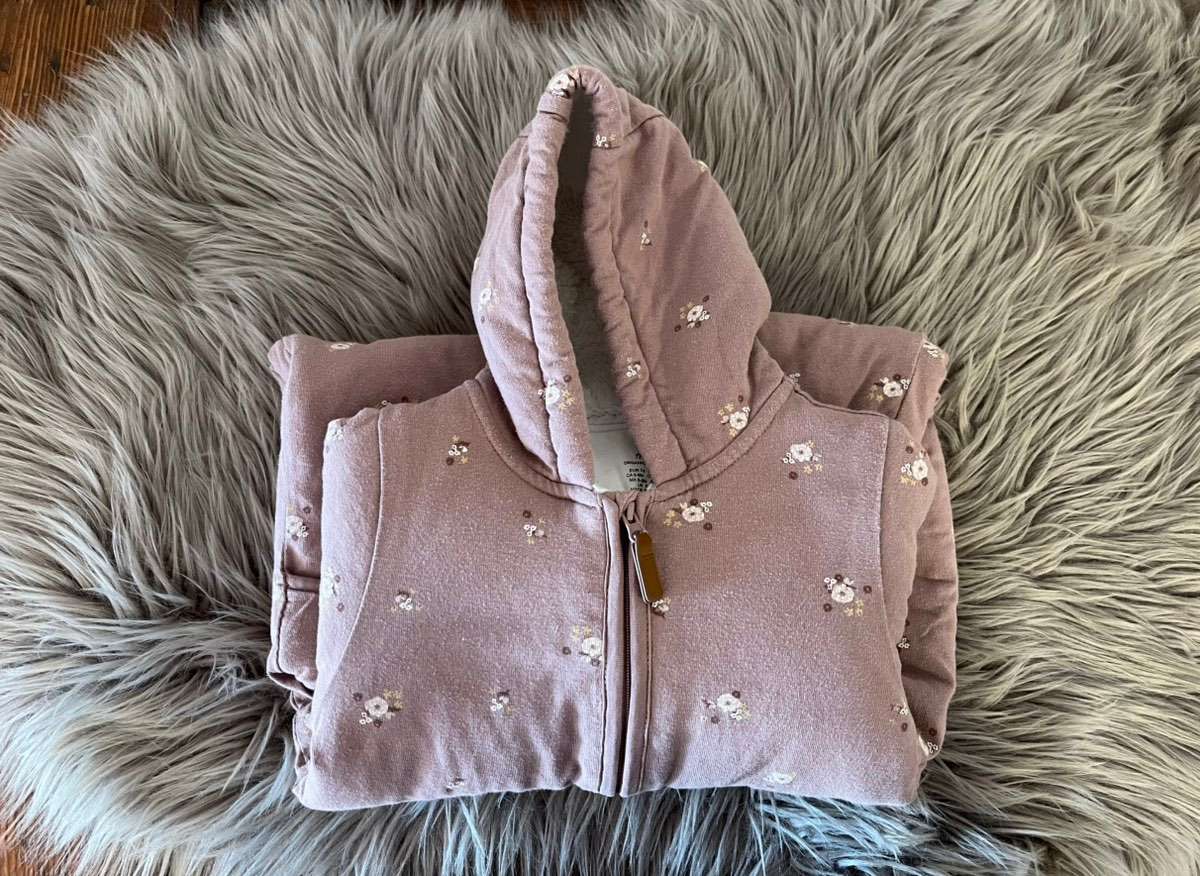 Die Ärmel und Füßchen können übergeschlagen werden.