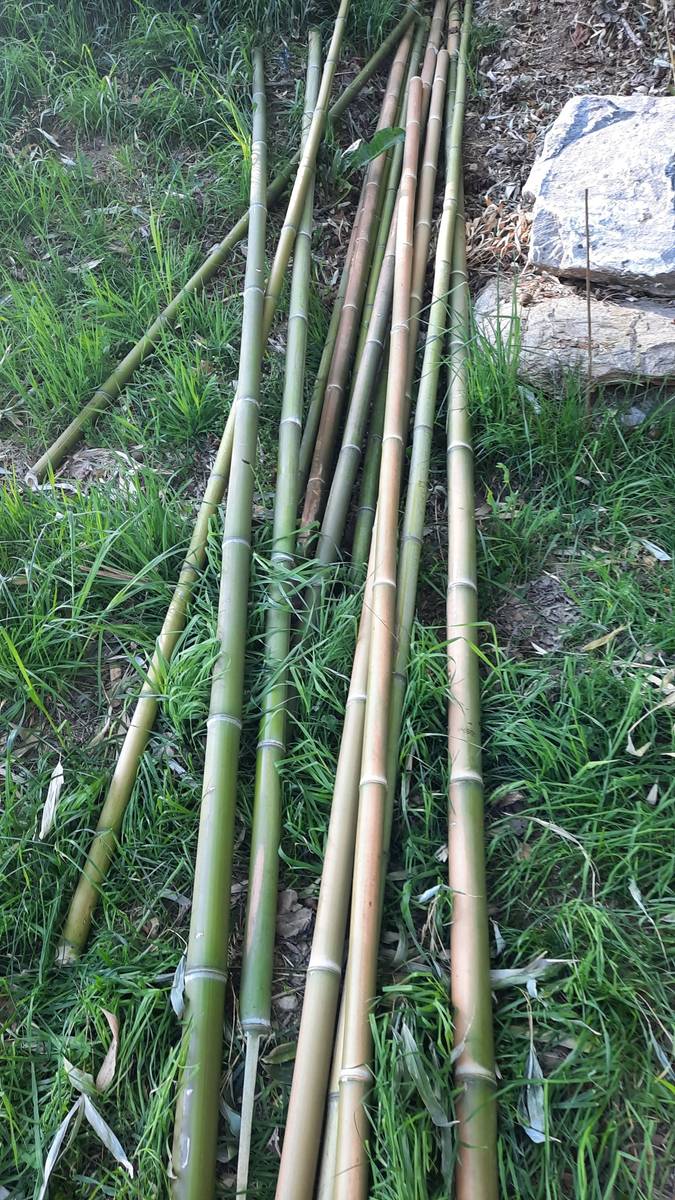 Es handelt sich um frisch geschnittene Bambusstangen (astfrei, gerade gewachsen) die eine Länge von ca. 3m haben, eine Dicke von 3-4 cm aufweisen.