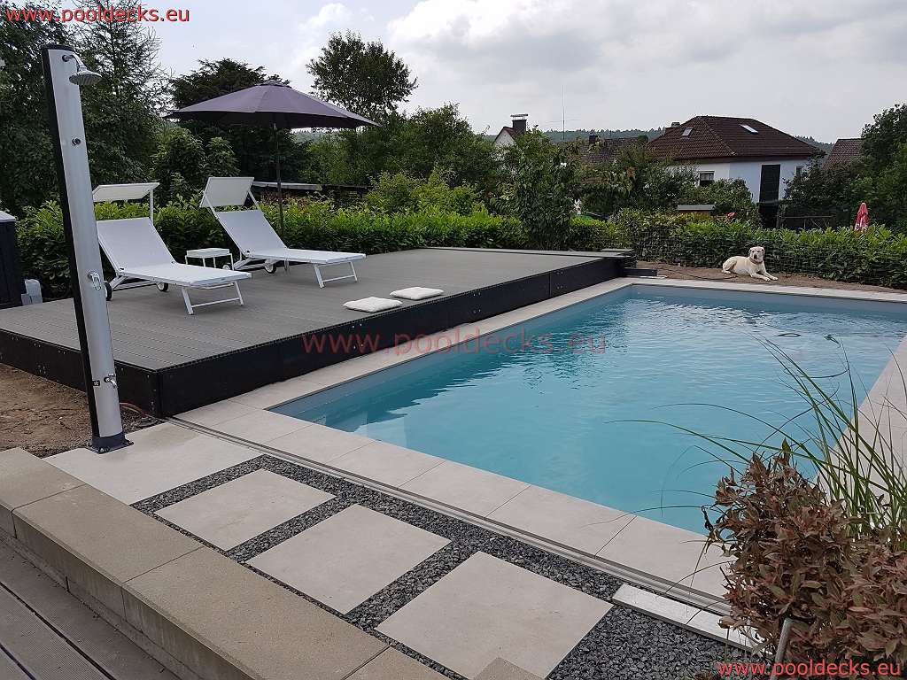 Der Klassiker der begehbaren Poolabdeckungen, einteilig, schlicht, wertig und elegant. Bauhöhe je nach Spannweite zwischen 150mm und 320mm. Deckbelag frei wählbar, optisch in Terrasse, Garten und Umgebung integrierbar. Ungeschlagen hoher Belastbarkeit, vorgespannt und durchbiege-optimiert, Belastbarkeit getestet.
