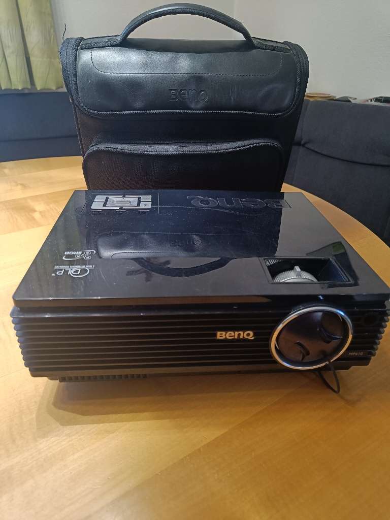 BenQ MP610 Beamer funktioniert. Die Fernbedienung ist beim letzten Umzug leider verloren gegangen. Die Transporttasche in Lederoptik ist auch dabei. Da Privatverkauf kann ich keine Garantie geben.