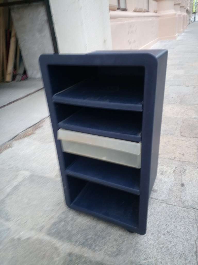Rollcontainer komplett aus Kunststoff, 3Fächer, eine Schublade, ca,65cm hoch, 40cm breit, 32cm tief, leicht zu transportieren