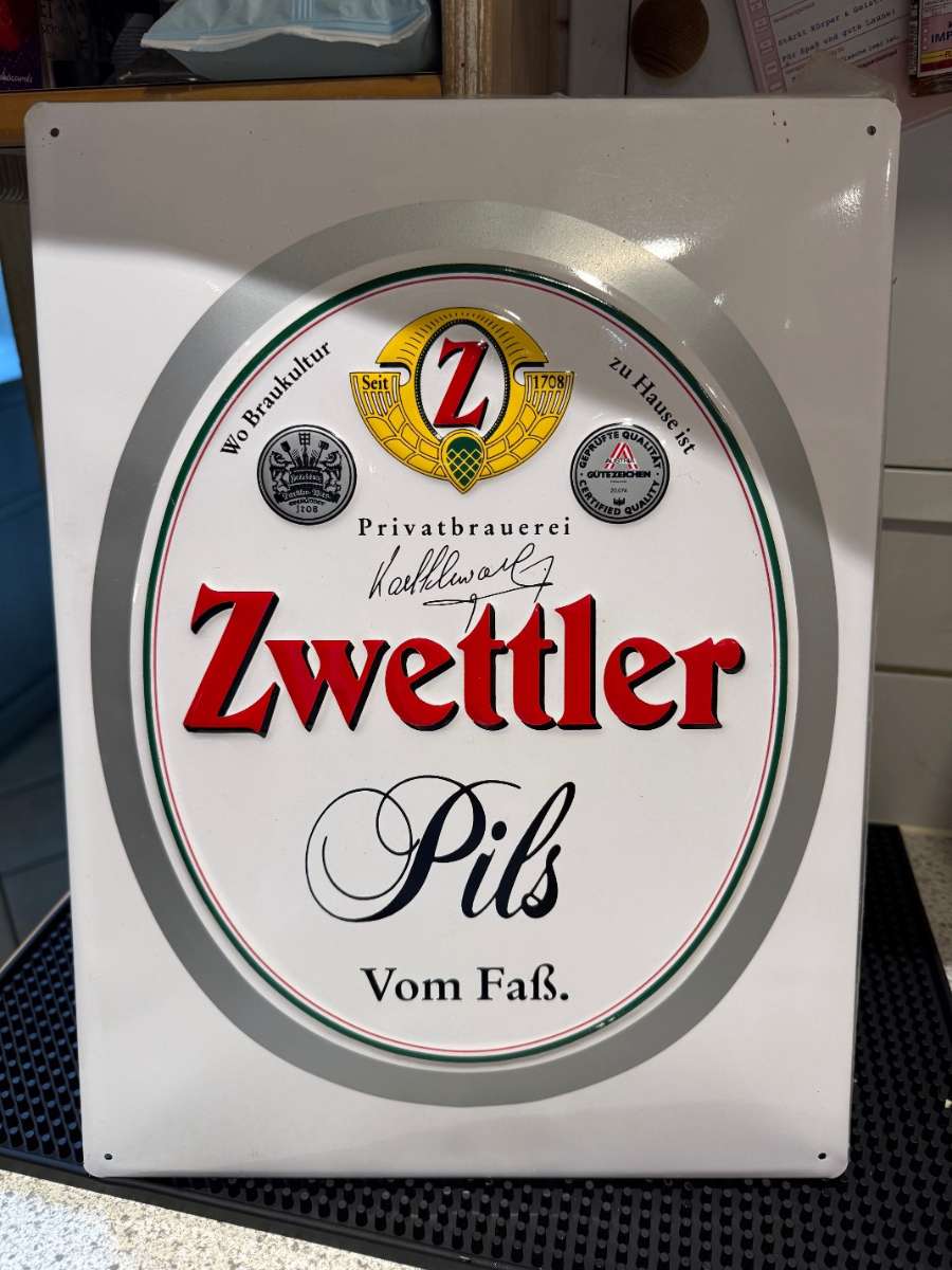 Altes Blechschild, Zwettler Bier