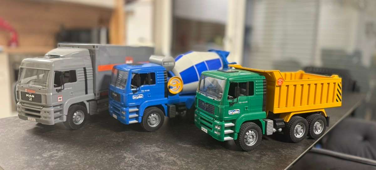 Bruder Set LKW Betonmischer Kipper Container