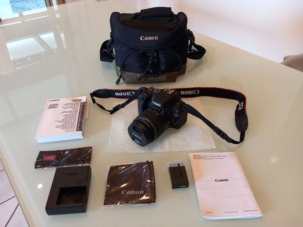 Die Kamera ist am neuesten Stand der Technik, verfügt über einen Touch-Bildschirm, der herausklappbar und drehbar ist. Die Kamera ist mit einem EFS 18-55 mm Objektiv ausgestattet.