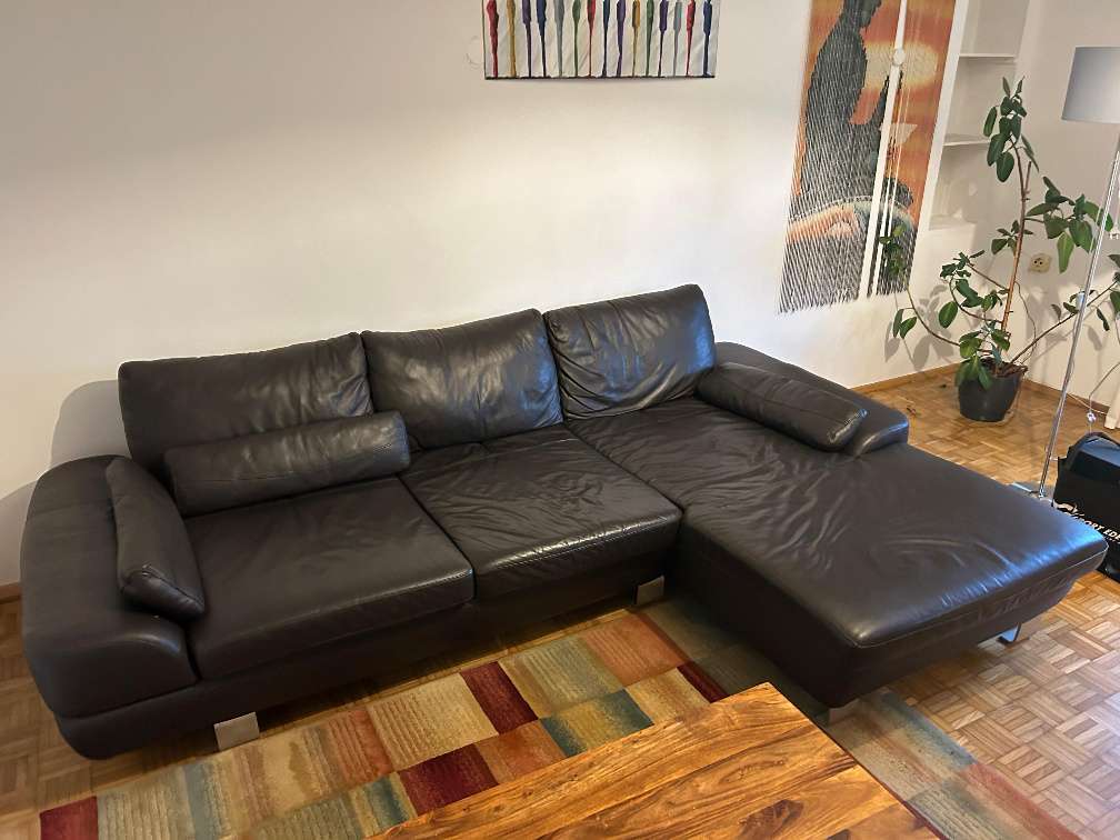Mokka-braune Ledercouch (L-Form) zu verkaufen.