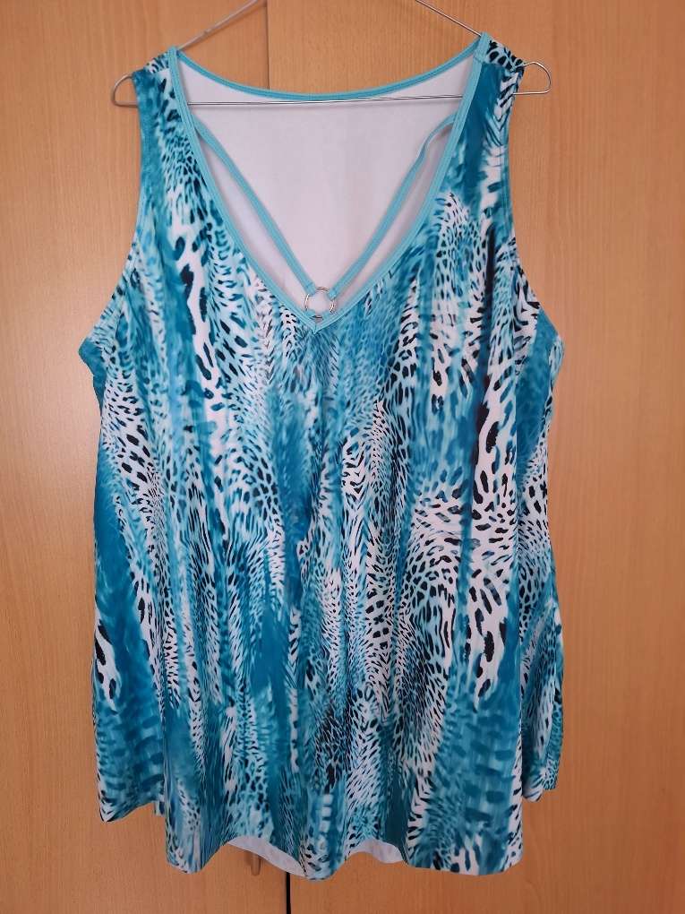 TANKINI mit extra schönem Ausschnitt. Softschalen und kleinem einfarbigen Höschen . Gr. 46. Ungetragen. Inkl Versand.