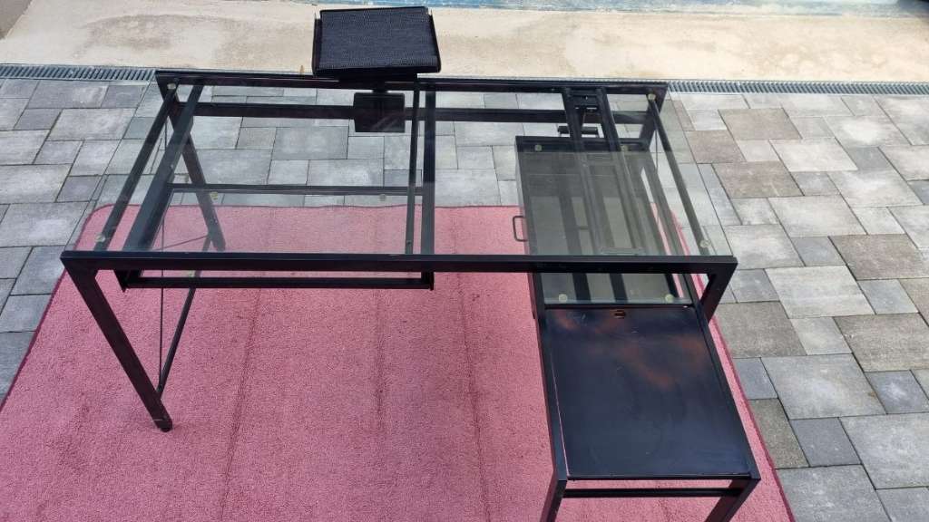 Eine ausziehbare Glasplatte für die Tastatur, oder anderes.