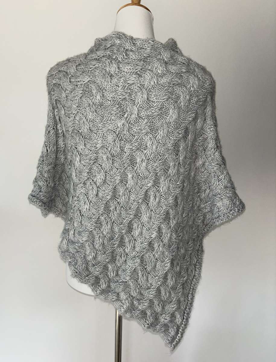 dicker warmer Poncho hellgrau mit Alpaka & Wolle
