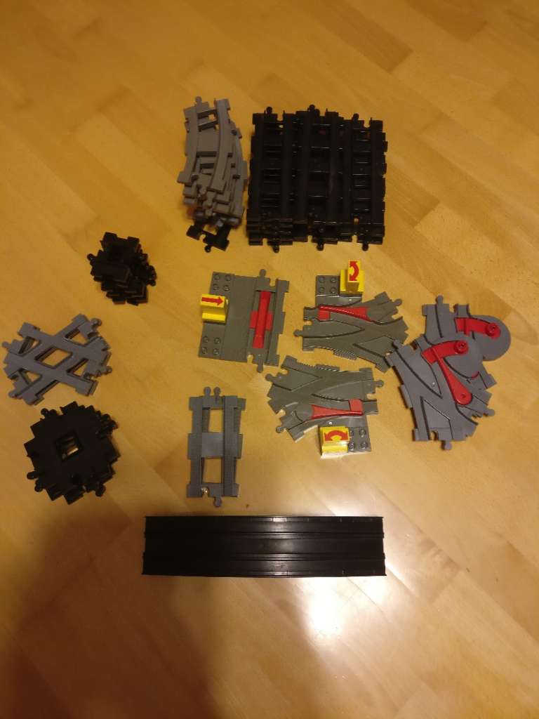 Duplo Weichen, Duplo Kreuzungen, kurze Duploschienen, Schienen, Brücke, Tunnel etc. verfügbar. 3 Duplozüge verfügbar und viele Duplosteine - Kinder sind auf Lego umgestiegen.