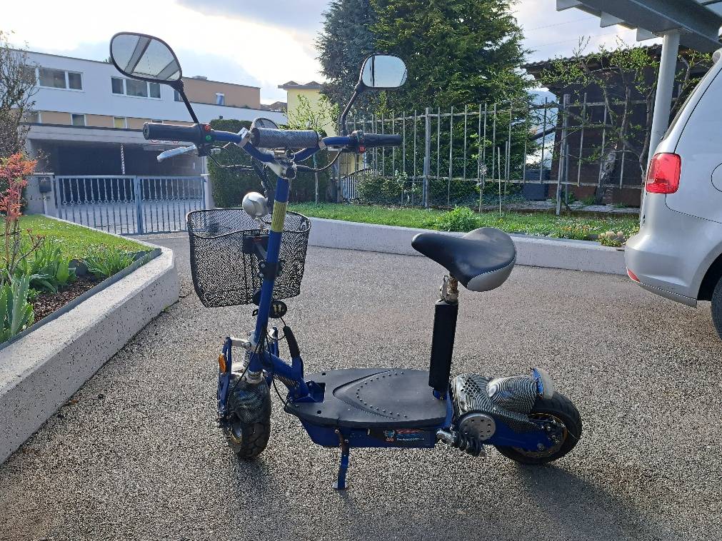 Verkaufe E-Scooter. Hat bis zuletzt einwandfrei funktioniert benötigt jedoch eine neue Antriebskette und Bremsbacken! Ich gebe auch einen 2ten Akku dazu.