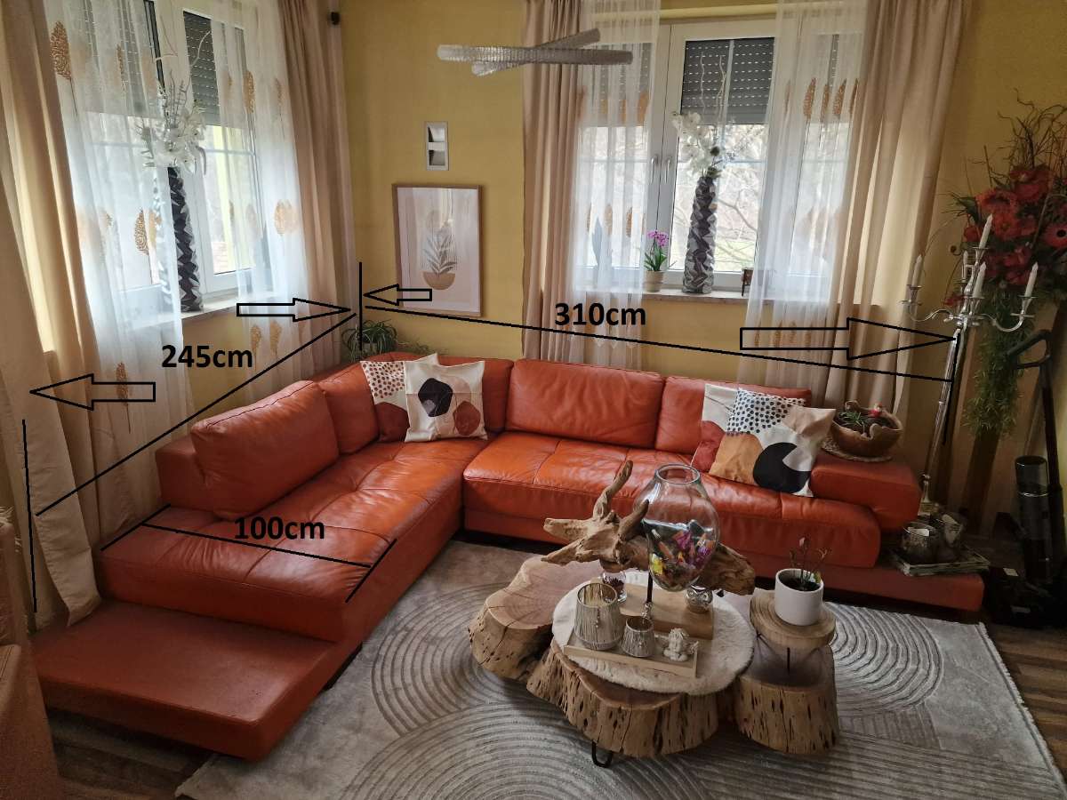 Eckcouch / Wohnlandschaft aus echtem Rindsleder - Orange
