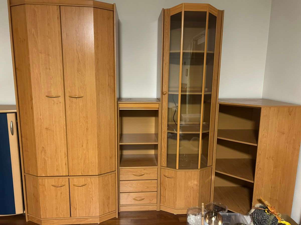 Eckschrank mit Glasvitrine und Kleiderschrank