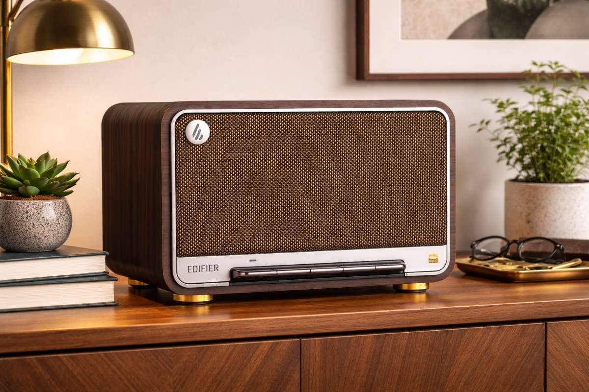 Der Edifier D32 kombiniert retro Design mit moderner Hi-Res Audio-Technologie. Dank kraftvollem 60 W RMS Sound, 2.1-Akustikarchitektur und Bluetooth 5.3 liefert er satten Klang für Zuhause, Büro oder Wohnzimmer.