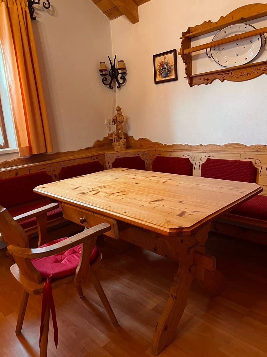 (verkauft) Esstisch mit Sitzbank aus Echtholz