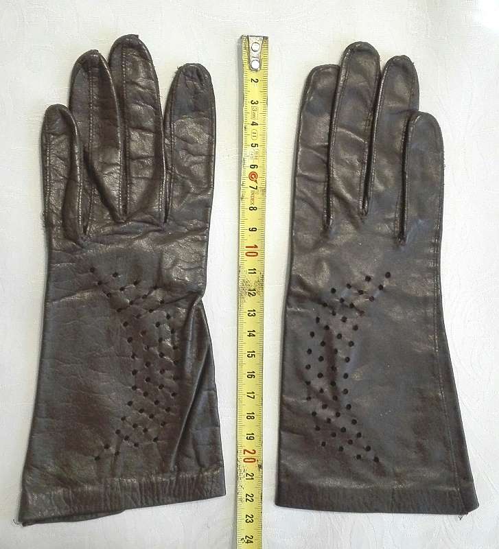 Dunkelbraune Damen Echtlederhandschuhe aus feinem Glattleder mit Lochmuster. Ungefüttert.