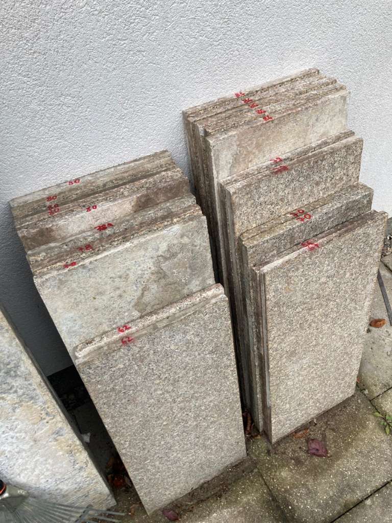 160 Platten 30x2 cm verschiedene Längen ( 30 - 88 cm ) = 30 m2 .