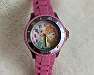 Rosa Armbanduhr, seitlich lila. Ideal zum Uhren lesen lernen. Batterie muss getauscht werden, ohne Krazer und ohne Gebrauchsspuren