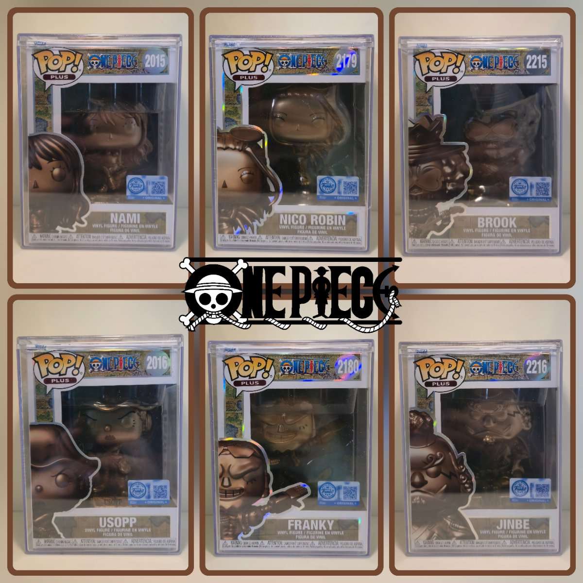 Enthalten sind 6 von 10 begehrten Web Exclusive Funko POP! One Piece - Bronze Statuen.
