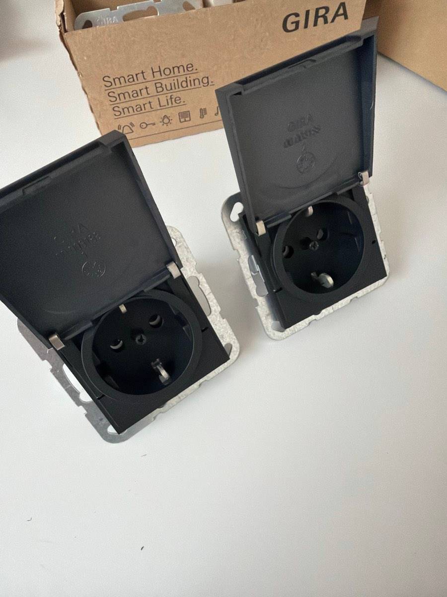 GIRA 4454005 SCHUKO-Steckdose System 55 | Klappdeckel | schwarz matt