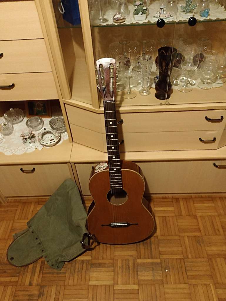 Sehr alte gitarre , ca. 80 -90j alt , hatt neue seiten , gut spielbar