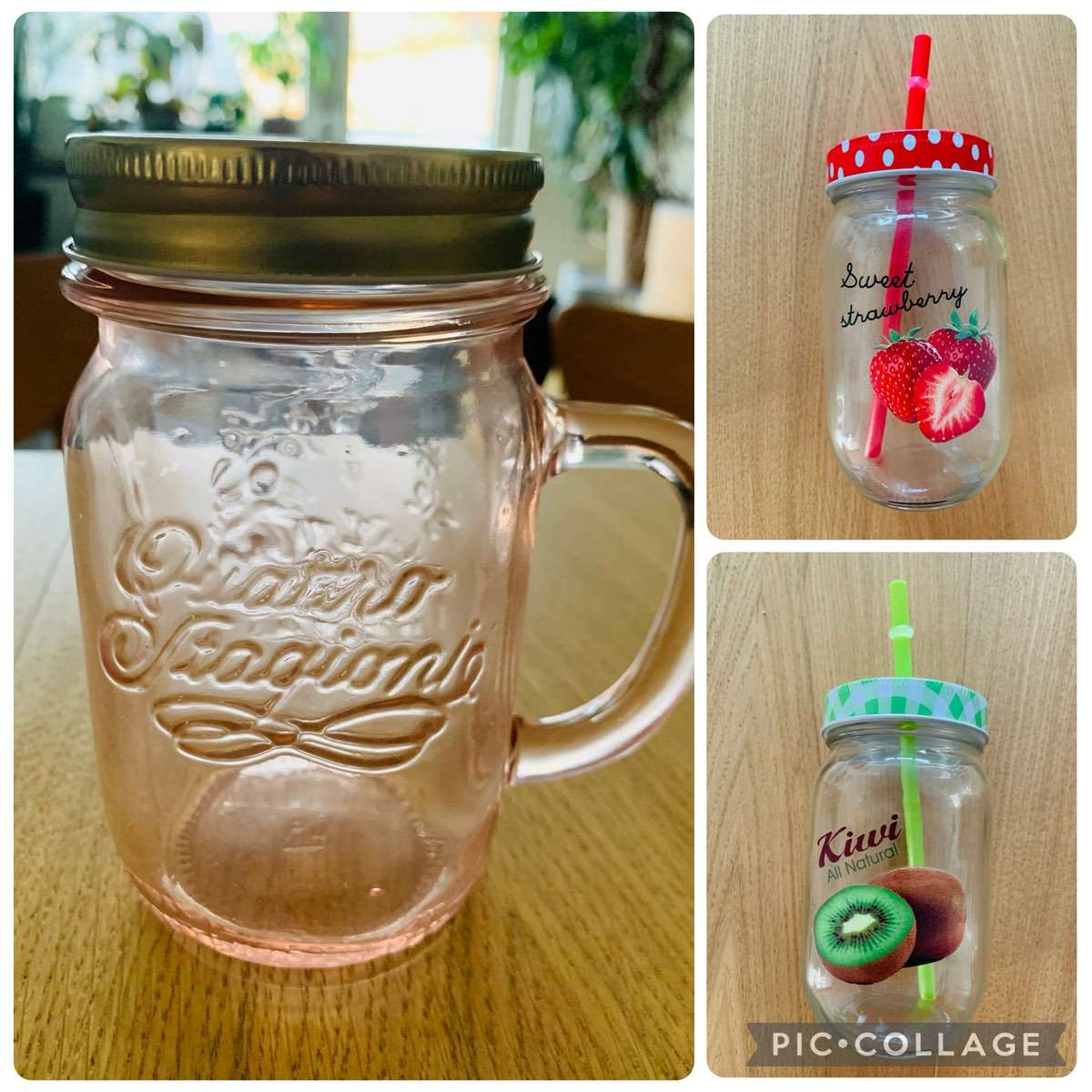 2x mit Fruchtsymbol und Strohhalm im Deckel