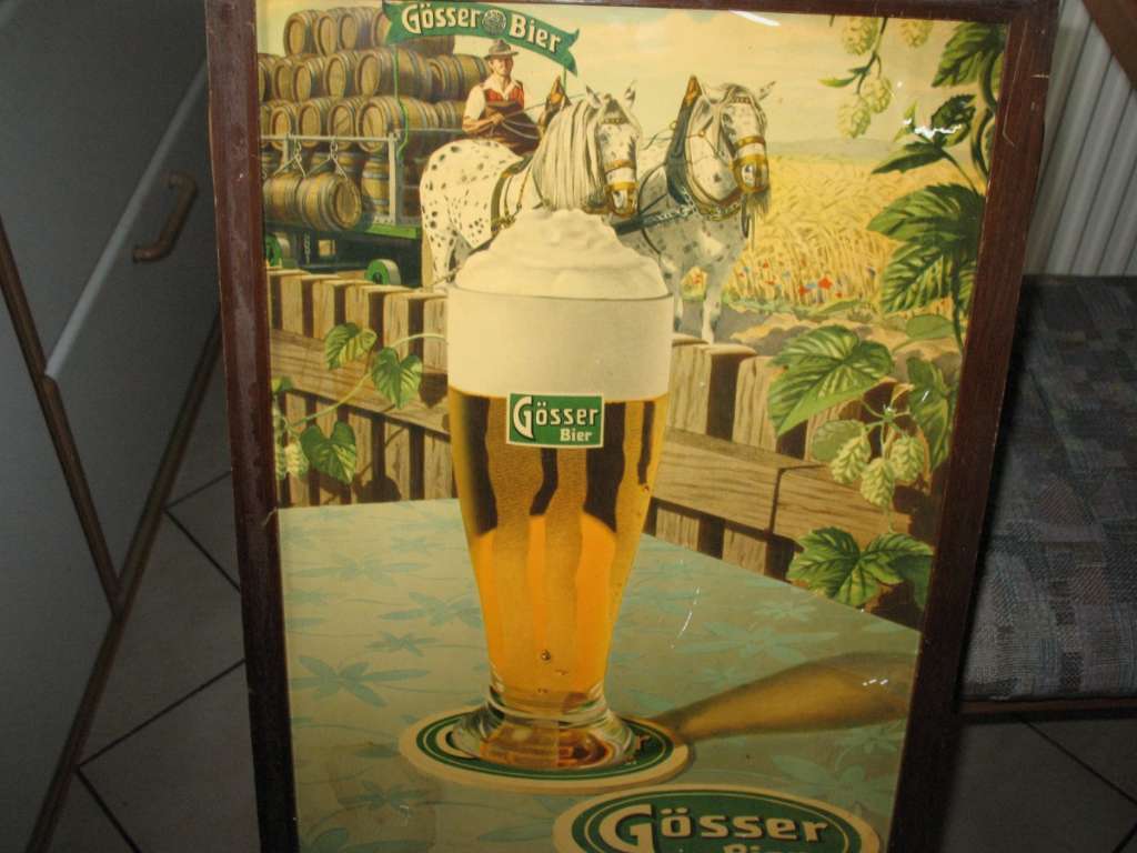 „GÖSSER BIER " - altes Wirtshausbild mit Bierkutscher