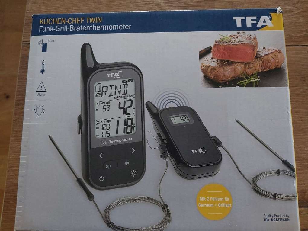 Verkaufe Grillthermometer mit 2 Fühlern. Wurde nur 1x verwendet. Funktionkiert einwandfrei. Habe allerdings auch einen zweiten mit Handyapp der mir besser zusagt, sodass ich diesen nicht mehr verwende und abgebe.