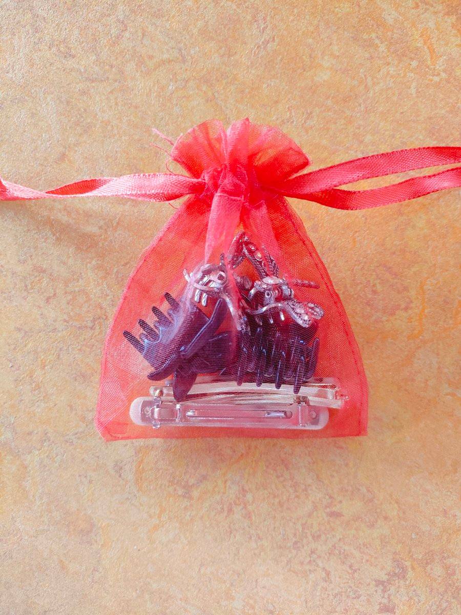 2 schwarze Schmetterlingsklammern, 2 silberfarbene Schmetterlingsklammern mit Glitzersteinen, 1 Haarspange, 2 Schiebespangen