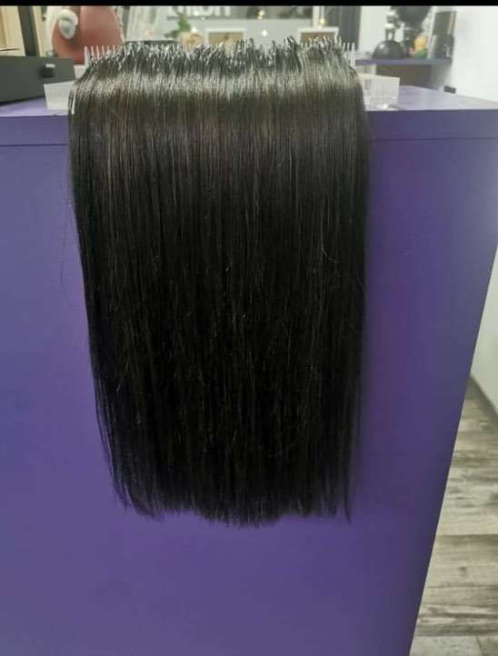 Die Haarverlängerung hat die Farbe dunkelbraun (3/0) und sie ist ausgestattet mit 150 Stück Bondings. Die Länge beträgt 40cm.