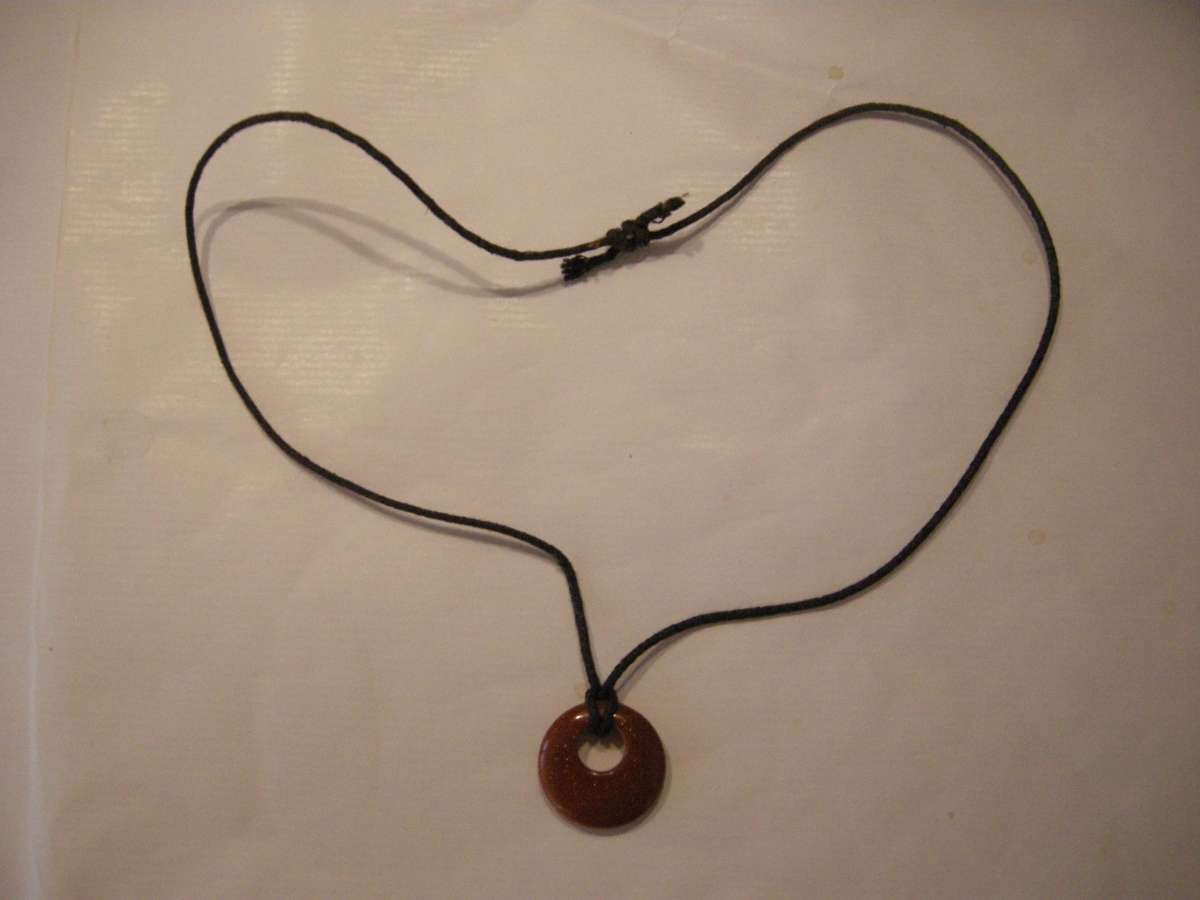 Ein Halsband mit einem braunen Steinring.