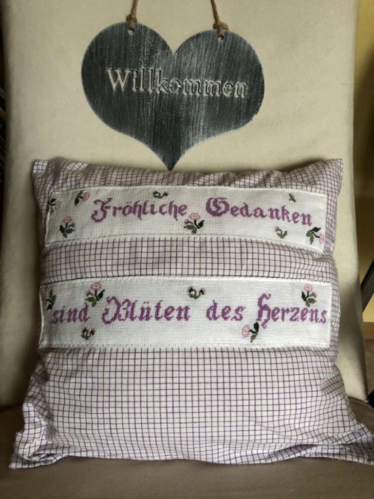Handarbeit, gestickter Polster, für Kachelofen, Almhütte, Küche, Kellerstüberl etc.