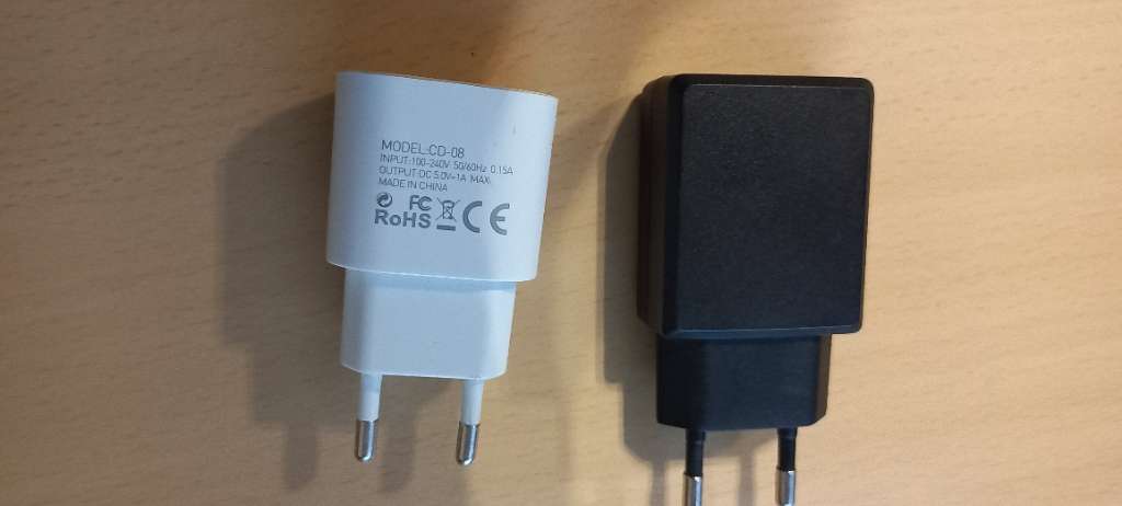 Lade-bzw. Netzgerät Rohs HDD,Weiß, 100-240V, 50/60Hz, 0,15A, Output: 5 V -1A = 2€.