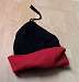 1) Diese Wollmütze ist zum wenden, entweder rot oder schwarz.