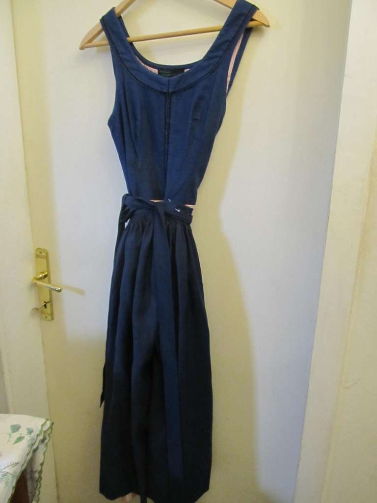 Original Heimatwerk Dirndlkleid, Neupreis sehr hoch, Gr. 36, Leinenleib dunkelblau, gefüttert, schöner langer Rock weiss/rosa gestreift, dunkelblaue Schürze, nur 1 x getragen, zzgl. Porto