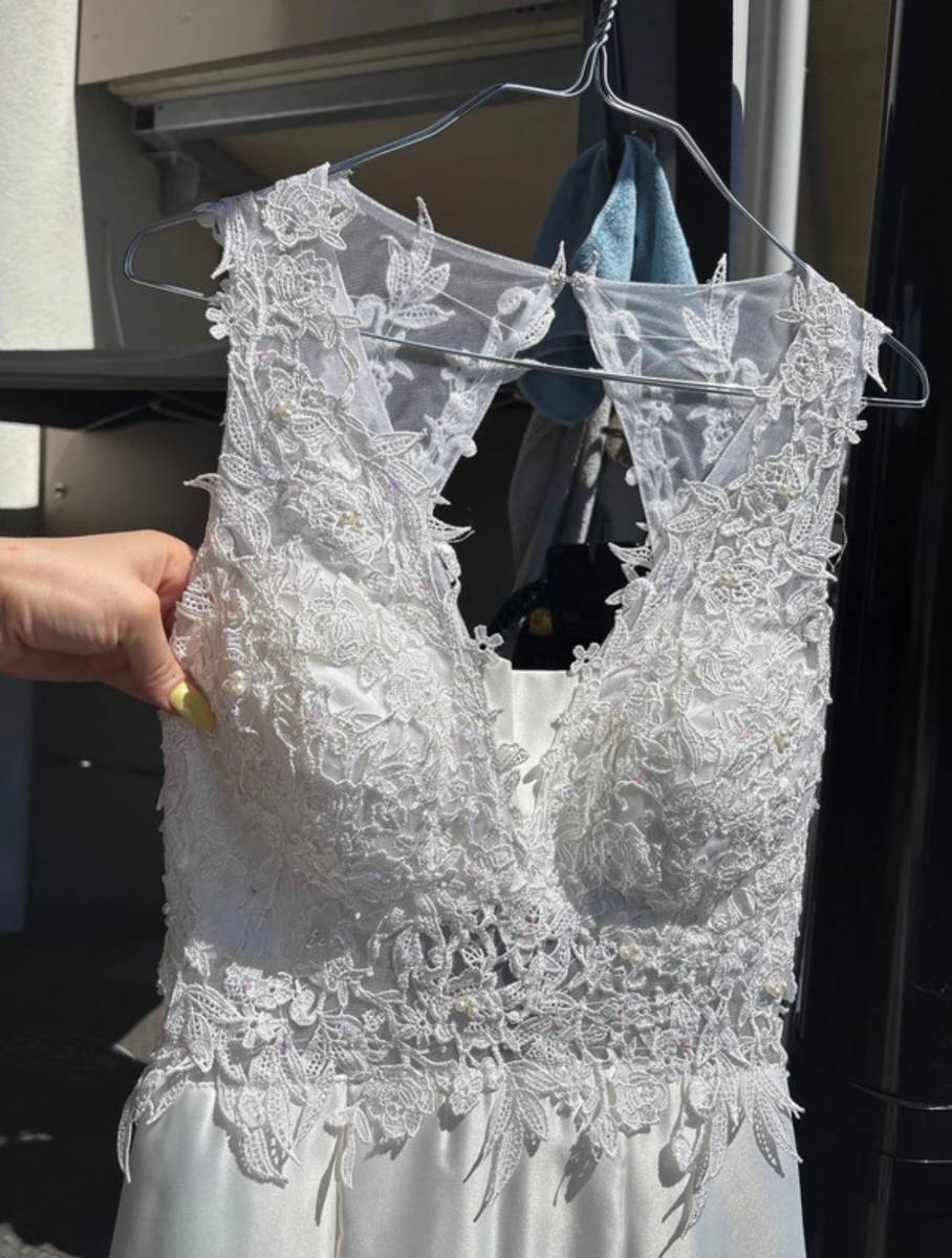 Verkaufe dieses wunderschöne Hochzeitskleid in Größe M, es wurde nur einmal getragen und kommt frisch aus der Reinigung