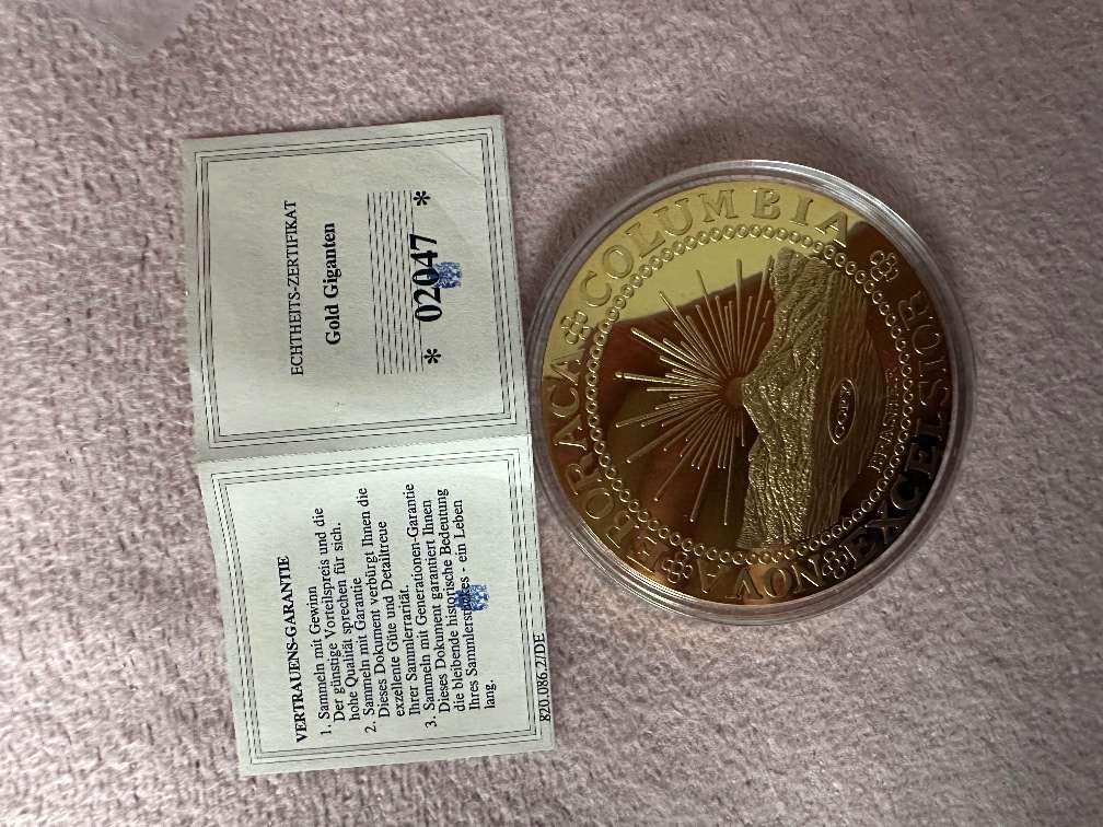 Ich verkaufe eine wunderschöne Medaille aus vergoldetem Kupfer. Motiv: Münzen in Europa.