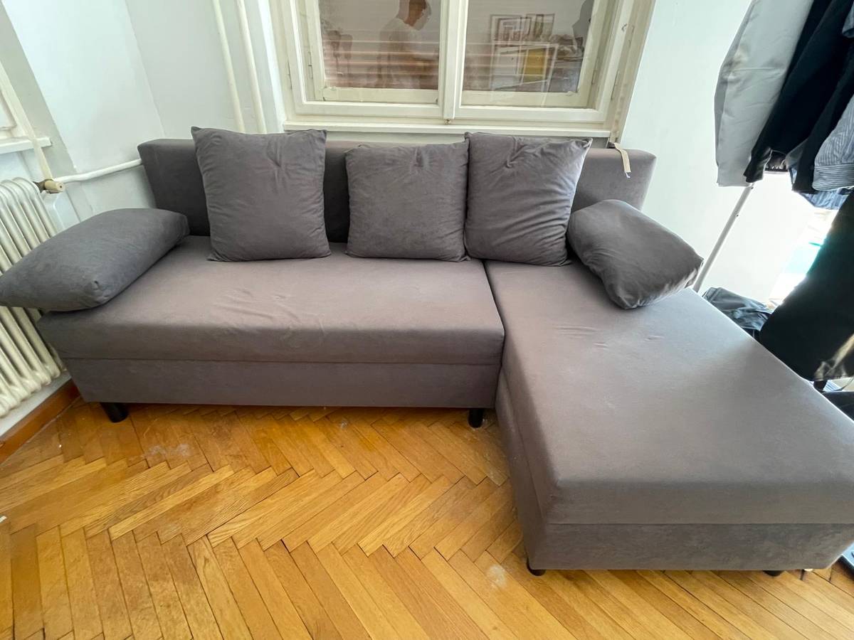 3er-Bettsofa mit Récamiere, Knisa graubeige