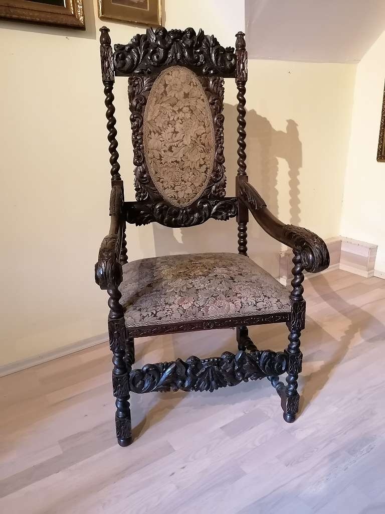Imposanter Historismus Armsessel, reichlich beschnitzt
