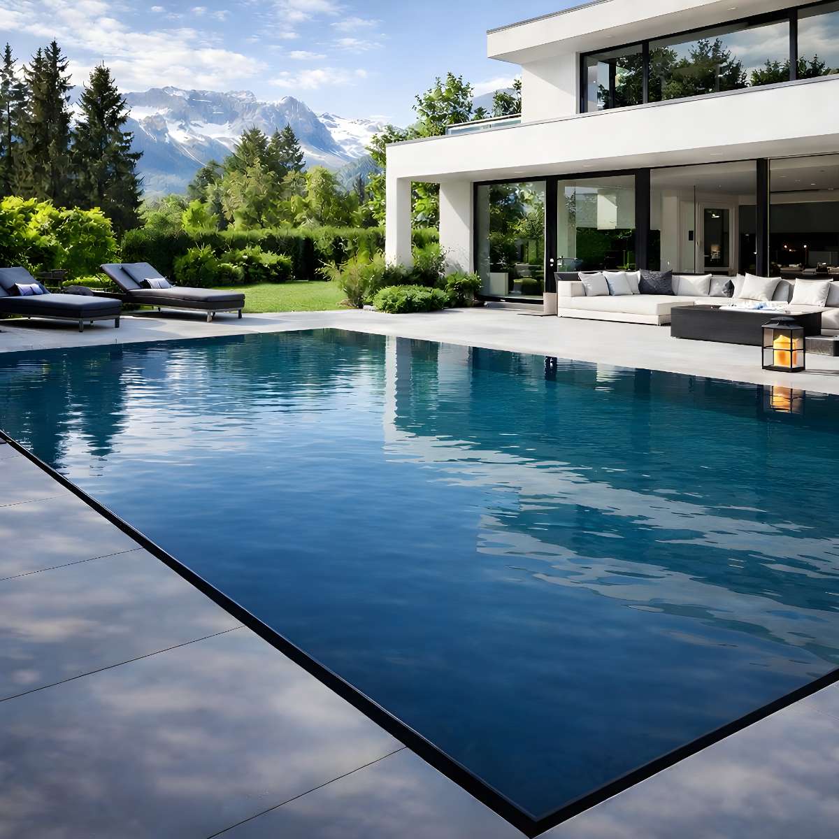 Der Infinity Pool Deluxe steht für modernes Pooldesign mit perfekter Wasserlinie: Eine umlaufende Mini-Überlaufrinne verläuft dezent als schmaler Schlitz zwischen Beckenrand und Pflasterstein – ganz ohne sichtbare Roste. Das Ergebnis ist ein puristischer, luxuriöser Infinity-Look, der Wasser und Umgebung optisch verschmelzen lässt.