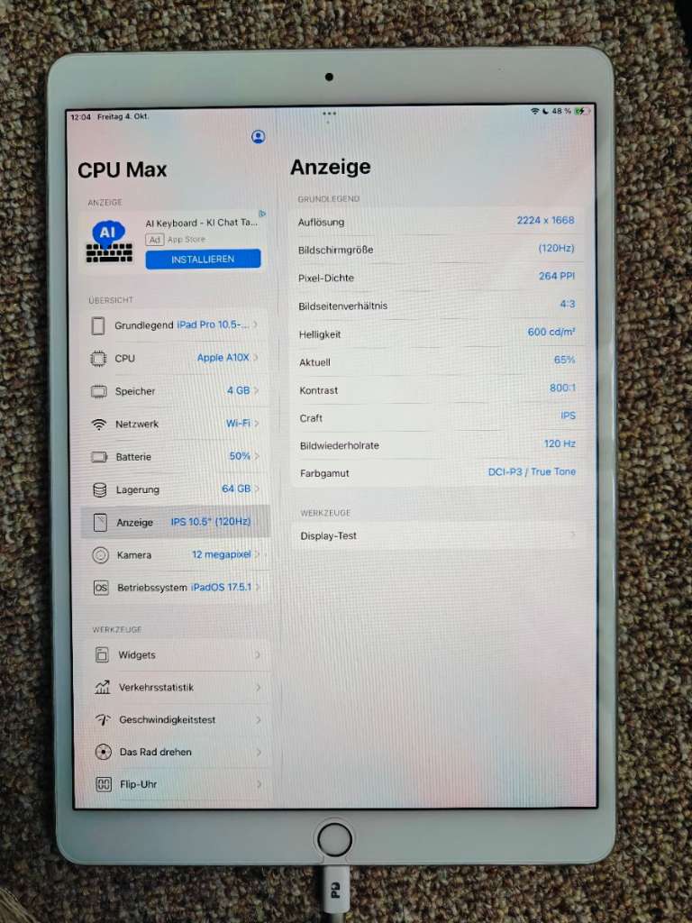 Display 10.5 Zoll 120Hz.