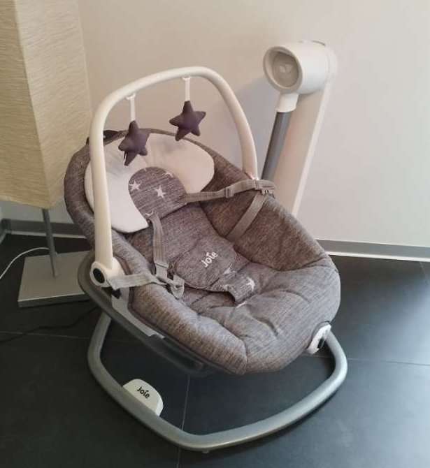 Besonderheiten: Bezug abnehmbar, Bezug waschbar, Sicherheitsgurt, Spielbogen, Wippe feststellbar, Vibration, Musik, elektronische Schaukelfunktion