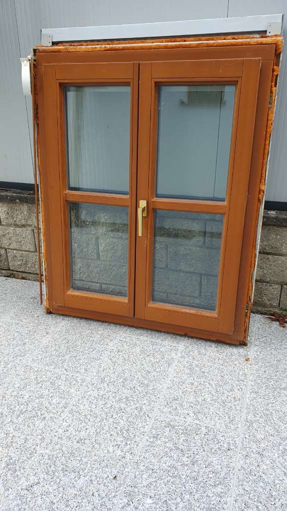 1 Stk. Josko Fenster aus Oregon-Kiefer, zweiflügelig, mit Rolladen (inkl. Einbau-Gurtaufwickler, Aussenschienen) und Blindstock. Bei Gebäudeumbau übrig geblieben.