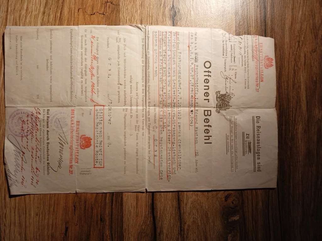 K. u. K. Brief Offener Befehl Infaterieregiment 27 Militär Kaiser