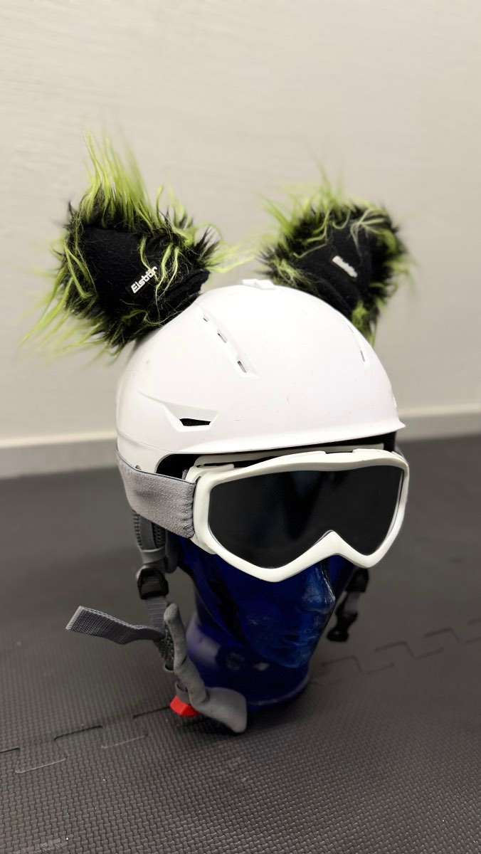Kinder-Skihelm mit "Eisbär"-Ohren grün