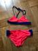 Bikini für Kinder in Neon-Orange und blau.
