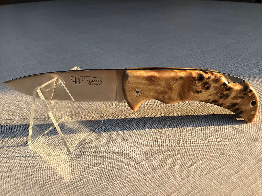 Klappmesser mit einer satinierten, rostfreie Klinge aus N690Co Stahl.