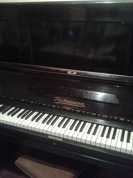 Gut erhaltenes schwarzes Pianino Marke Heitzmann,incl.Klavierhocker